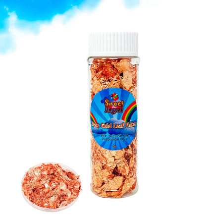 Indulge in the luxurious touch of Rose Gold Leaf! Elevate your baking and dessert decorations with a delicately shimmering finish. Add elegance and sophistication to any dish with 2 grams of Rose Gold flakes for decoration only .Make every moment a golden one with our Rose Gold Leaf!.